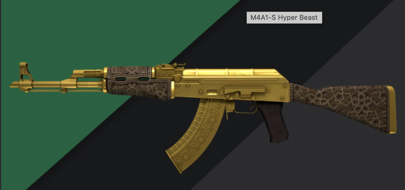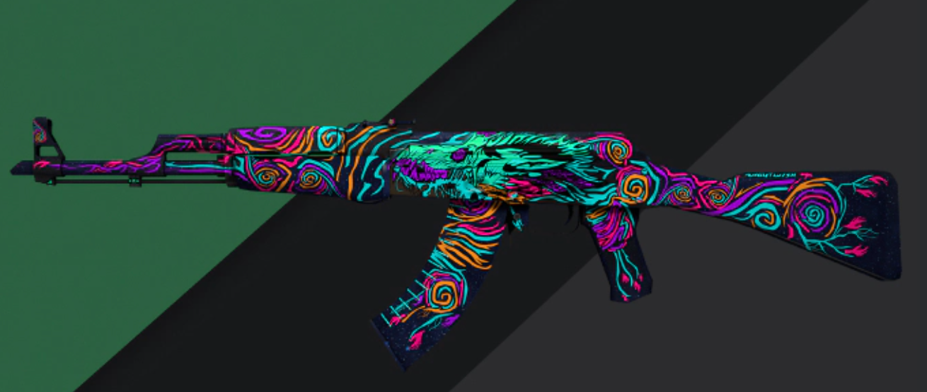 Hyper Beast is chaos with intention. Neon claws, monstrous jaws, and acidic colour transitions form a stunning wave of psychedelic aggression. The oversaturated palette of burning orange, venom green, and electric blue makes the rifle look alive — almost breathing. The creature design is iconic across multiple weapon lines, but the M4A1-S version remains the most beloved due to how the long suppressor and receiver allow the artwork to stretch into a full panoramic piece.