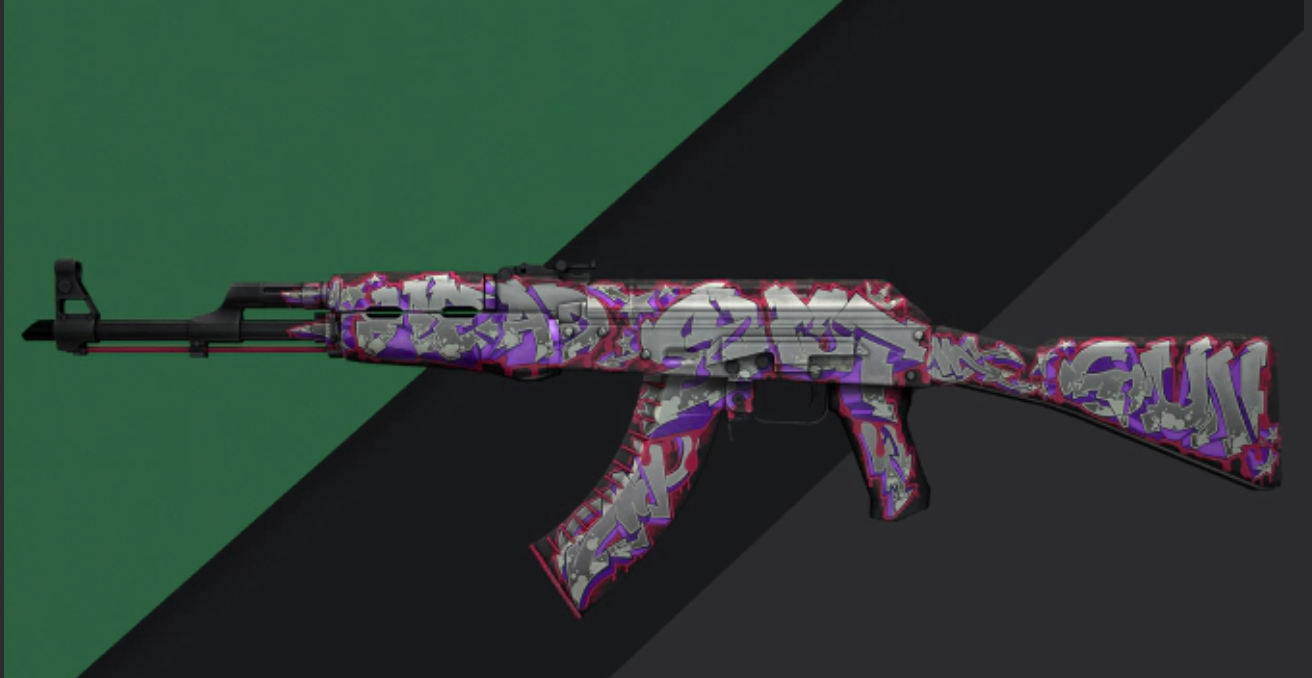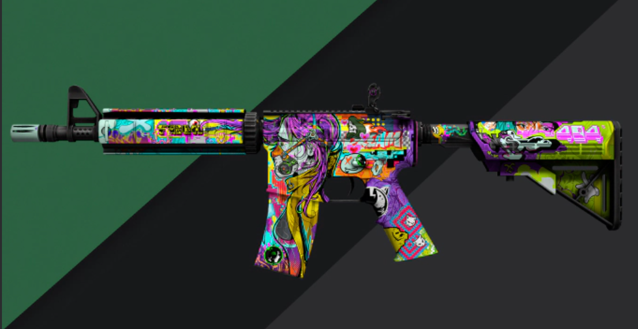 A full graffiti mural wrapped around an M4A4, this skin is vibrant, explosive, and unapologetically artistic. The layered colours and street-art influence give it a sense of rebellion and movement. It’s one of the most colourful rifles in the entire game — a walking canvas of neon expression.