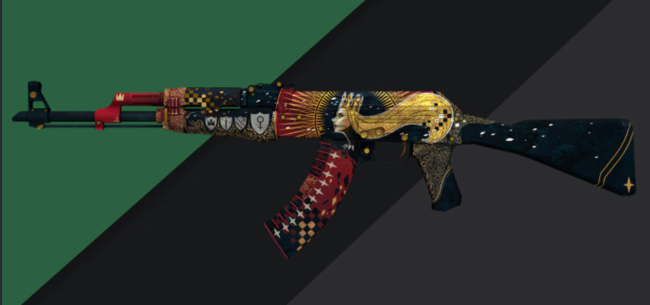 Gold Arabesque is the definition of luxury. The entire rifle is coated in polished gold, engraved with intricate Arabesque patterns inspired by classical Middle Eastern design. It radiates importance — almost ceremonial in its detailing — with every curve and motif crafted to give the impression of royalty. It’s one of the most prestigious AK skins ever released, and in CS2’s lighting environment, the shine becomes even more dramatic.