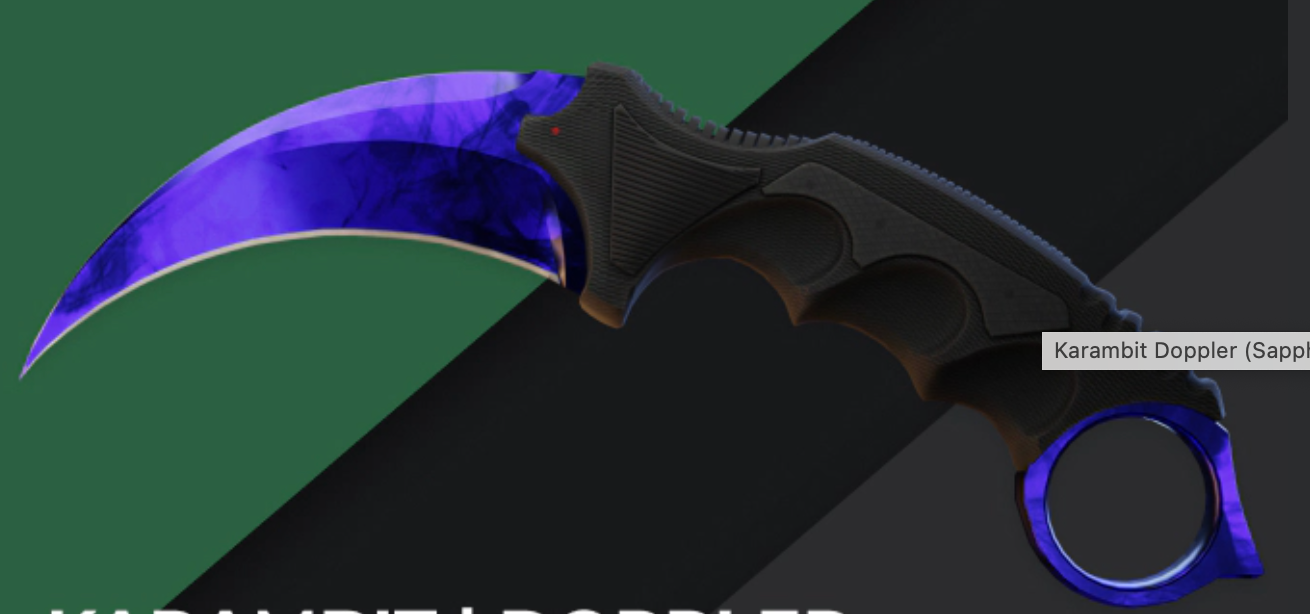 The Sapphire Doppler finish transforms the Karambit into a shimmering blue gemstone. Deep cobalt tones swirl with lighter electric blues, creating a luminous texture that shines brilliantly in CS2. The curved blade shape amplifies the sapphire effect, making each spin animation feel like the flash of a rare jewel being shown off.