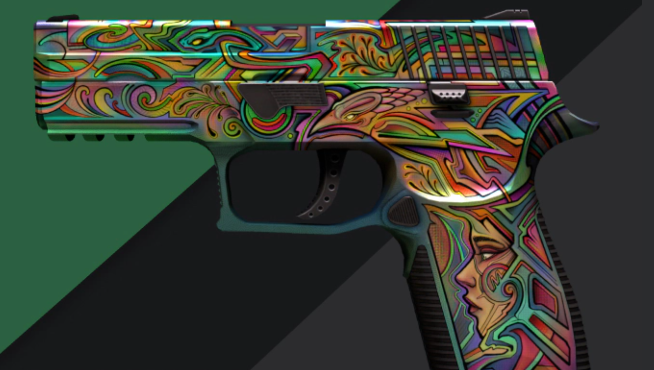 The P250 | Visions blends mysticism, symbolism, and graphic artistry into a compact masterpiece. Its design incorporates tarot-like illustrations, mythological creatures, and bold colour contrasts. The deep magentas and shadowed blues form an otherworldly background, while golden accents highlight the symbolic figures. Although it’s a lower-cost pistol, the skin feels premium and narrative-rich, almost as though each shot reveals a different part of a dream sequence. The layered linework and surreal atmosphere make Visions one of the most unexpectedly beautiful pistols ever added to CS.