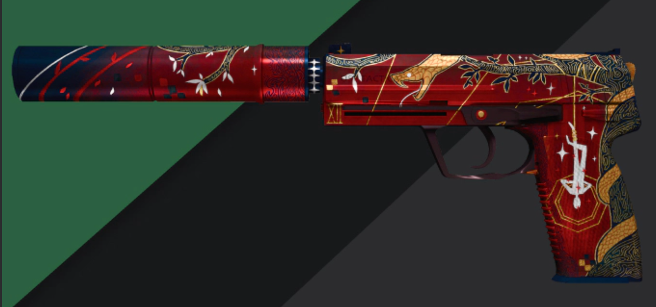 Twin serpents in gold and crimson coil across the body of the AWP | Duality, representing power, danger, and the eternal tug-of-war between dominance and restraint. CS2’s improved shine and reflection bring out the metallic gold in particular, giving the skin a regal, legendary tone. The contrast between the snakes and the dark, disciplined base coat shows deliberate balance — a nod to the weapon’s precision-focused identity. It’s a skin that commands attention without going overboard.
